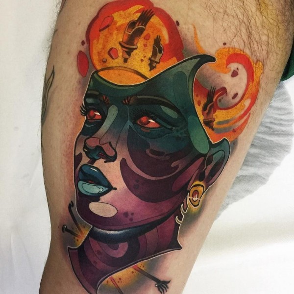 女人头纹身图案 多款艺术纹身彩绘风格和黑白灰风格的女人头纹身图案