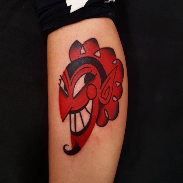 复古卡通红唇美女手臂纹身_卡通纹身图案大全_纹身图吧
