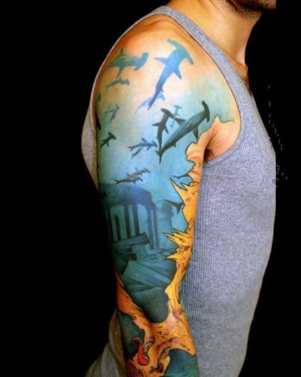花臂纹身-气场无敌的男士花臂纹身10个男人9个爱的纹身图片