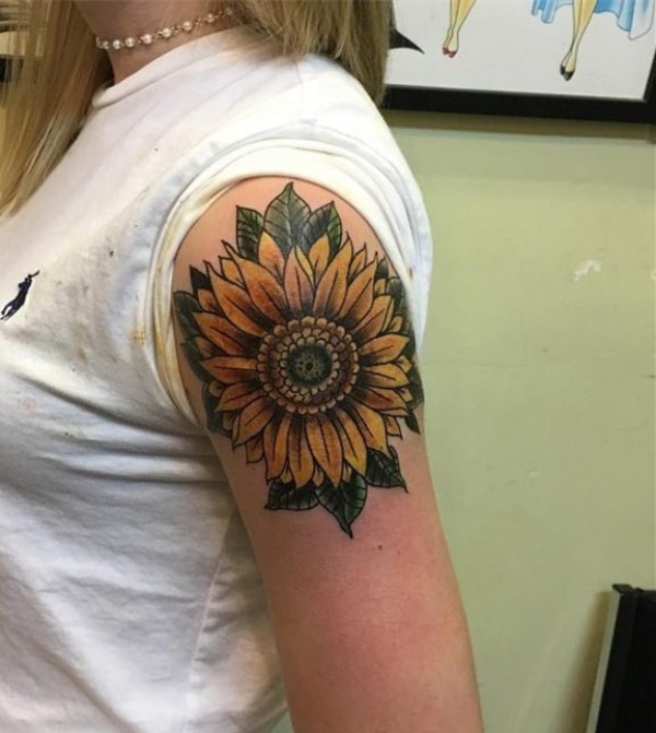 女性肩膀上多款漂亮的花朵纹身图案