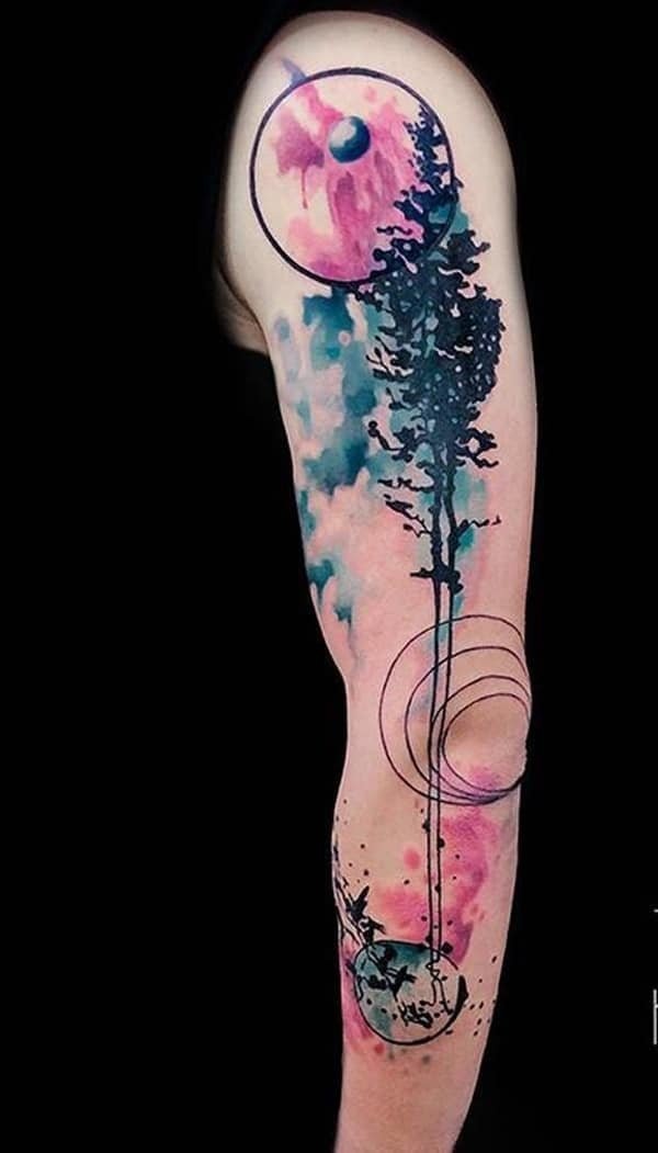 彩色花臂纹身图案 水彩泼墨纹身中国风彩色花臂纹身图案大全