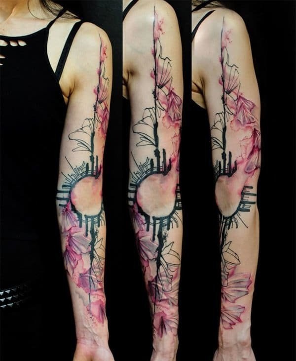 彩色花臂纹身图案 水彩泼墨纹身中国风彩色花臂纹身图案大全