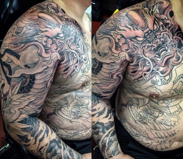 日式手彫刺青作品—半甲龙很感谢客户认可手彫刺青,手彫是日本纹身的手工雕刻技术,时间可以追溯到日本17世纪的江户时代。19世纪,手彫技术被日本黑帮挪用,被用作入会仪式,象征着从此就是江湖中人。在日式传统