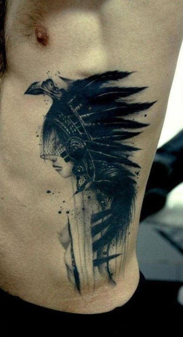 侧腰纹身图 设计感十足的侧腰纹身图案