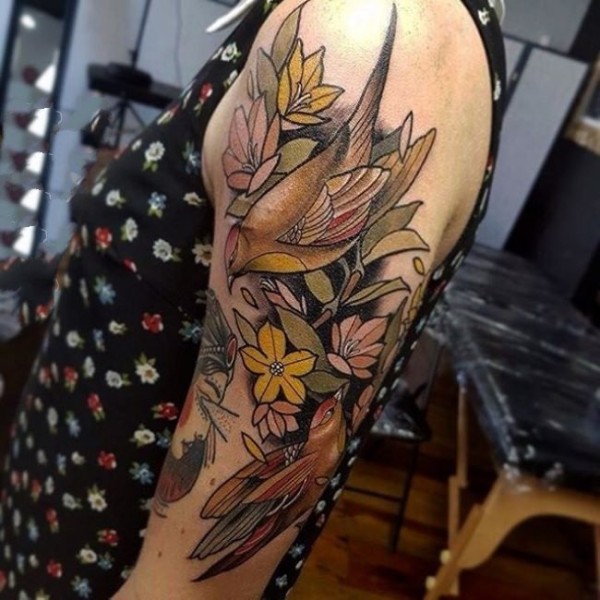 女性肩膀上多款漂亮的花朵纹身图案