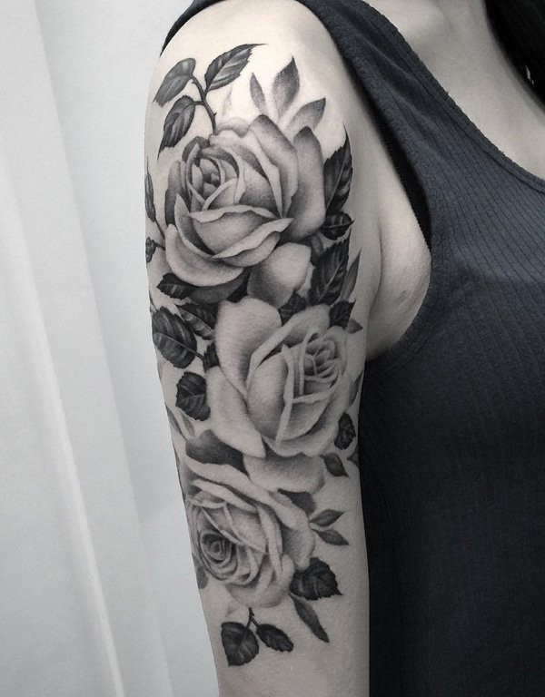 纹身唯美图片 花枝招展的玫瑰纹身图案