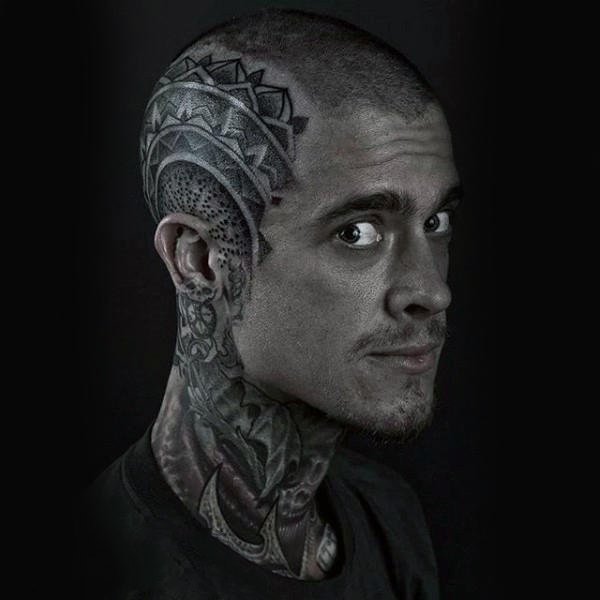 头部纹身图案 个性十足的男生头部纹身图案
