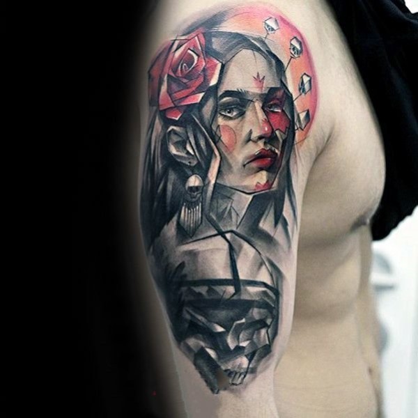 女性人物纹身图案 男生大臂纹身女性人物纹身图案