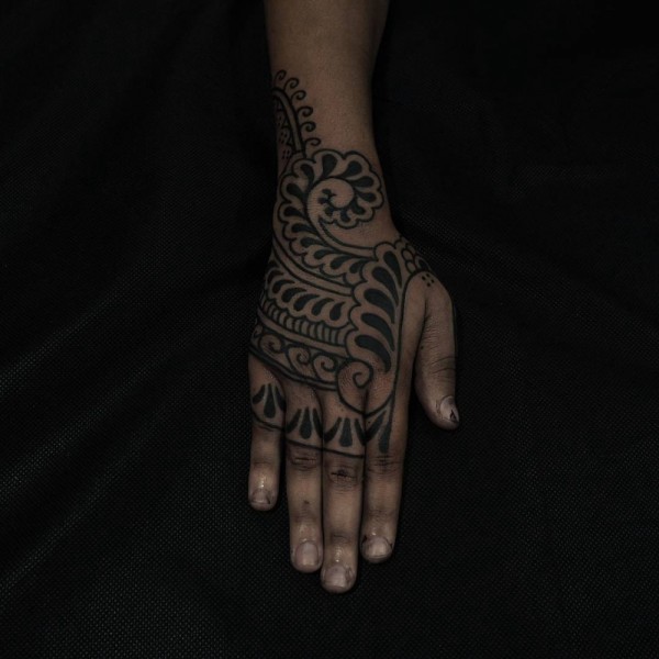 手背上纹身图案 手背上素描纹身黑白灰风格和彩绘纹身风格的动物纹身及花纹身图案