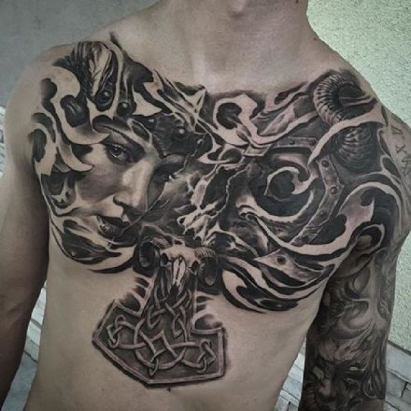 花胸纹身--一组男性霸气的大花胸纹身图案作品欣赏