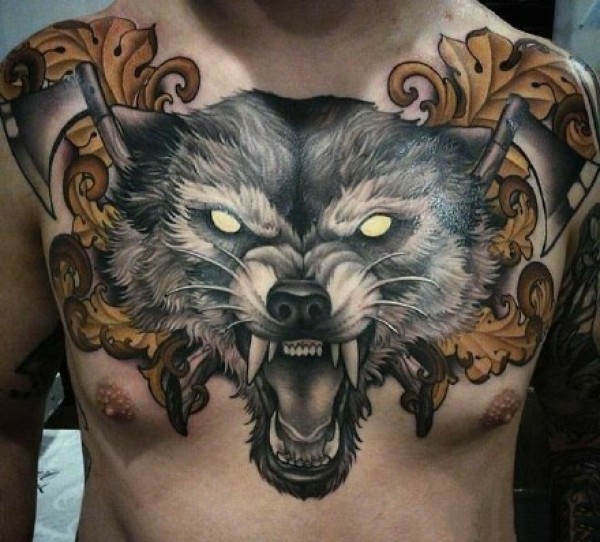 花胸纹身--一组男性霸气的大花胸纹身图案作品欣赏