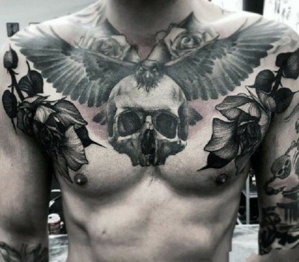 花胸纹身--一组男性霸气的大花胸纹身图案作品欣赏