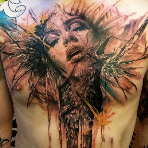花胸纹身--一组男性霸气的大花胸纹身图案作品欣赏