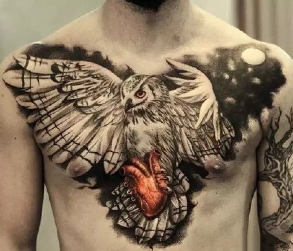 花胸纹身--一组男性霸气的大花胸纹身图案作品欣赏