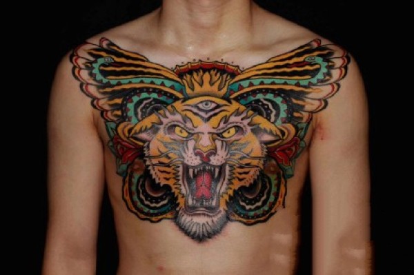 花胸纹身--一组男性霸气的大花胸纹身图案作品欣赏