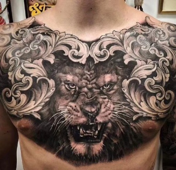 花胸纹身--一组男性霸气的大花胸纹身图案作品欣赏
