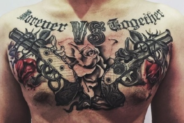 花胸纹身--一组男性霸气的大花胸纹身图案作品欣赏
