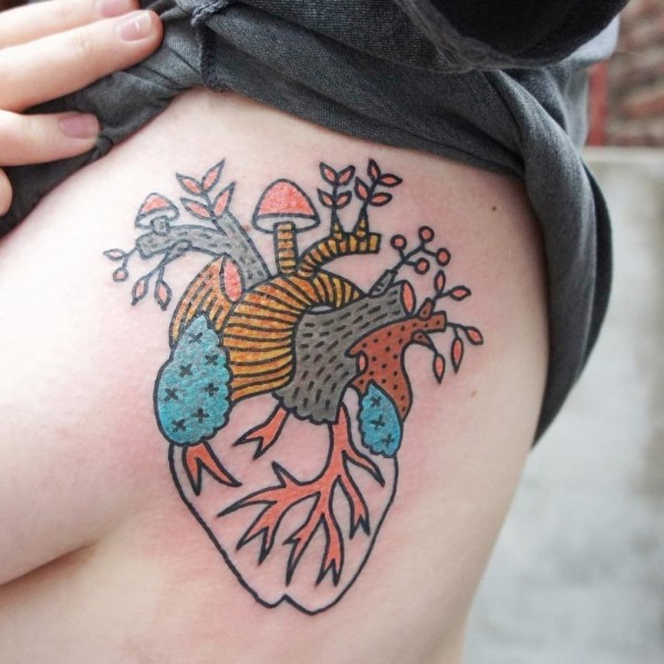 心脏纹身图案 身体各个部位彩绘纹身和写实纹身的心脏纹身图案
