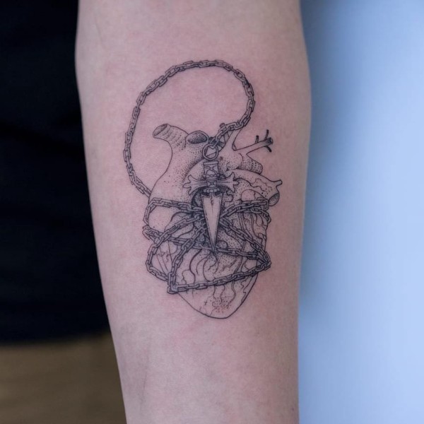 心脏纹身图案 身体各个部位彩绘纹身和写实纹身的心脏纹身图案