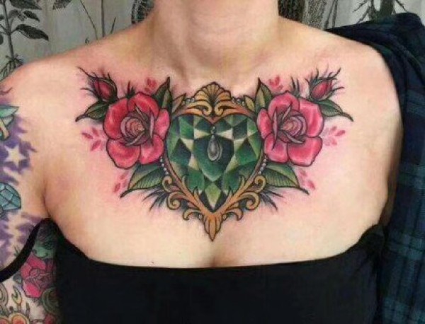 女性大花胸纹身_43张霸气漂亮的女性大花胸纹身图案作品