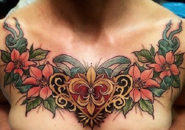 女性大花胸纹身_43张霸气漂亮的女性大花胸纹身图案作品