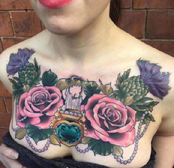 女性大花胸纹身_43张霸气漂亮的女性大花胸纹身图案作品