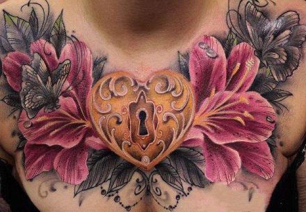 女性大花胸纹身_43张霸气漂亮的女性大花胸纹身图案作品