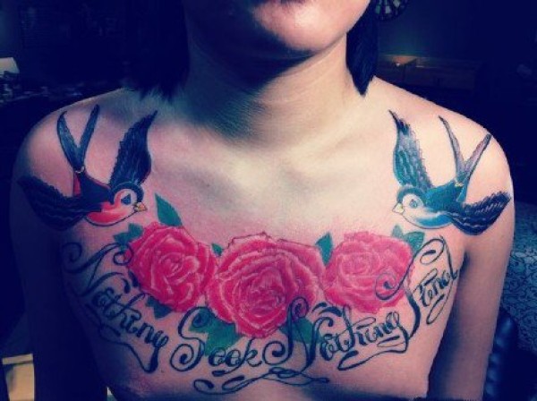 女性大花胸纹身_43张霸气漂亮的女性大花胸纹身图案作品