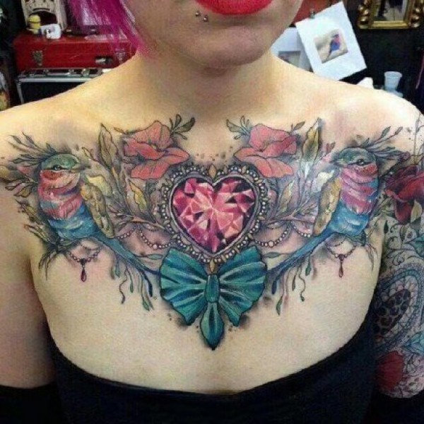女性大花胸纹身_43张霸气漂亮的女性大花胸纹身图案作品