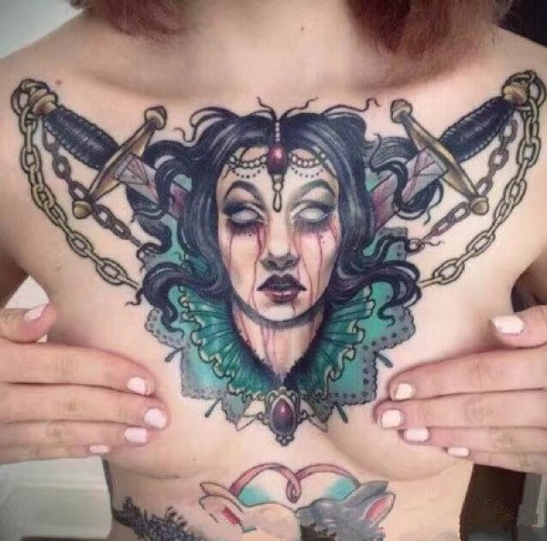 女性大花胸纹身_43张霸气漂亮的女性大花胸纹身图案作品