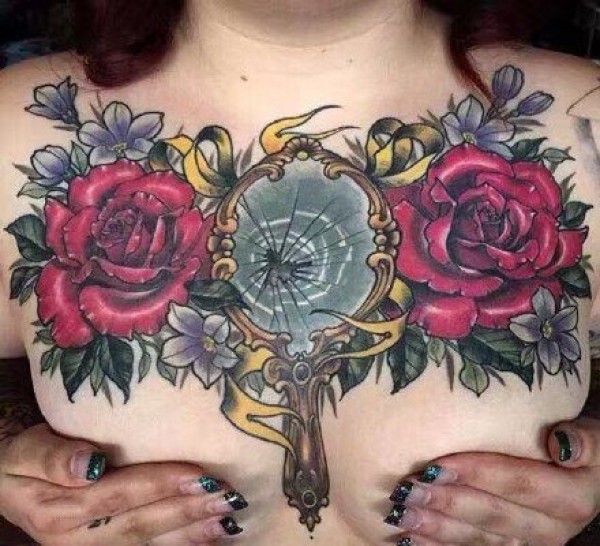 女性大花胸纹身_43张霸气漂亮的女性大花胸纹身图案作品
