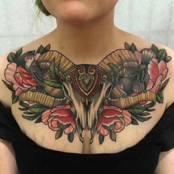 女性大花胸纹身_43张霸气漂亮的女性大花胸纹身图案作品
