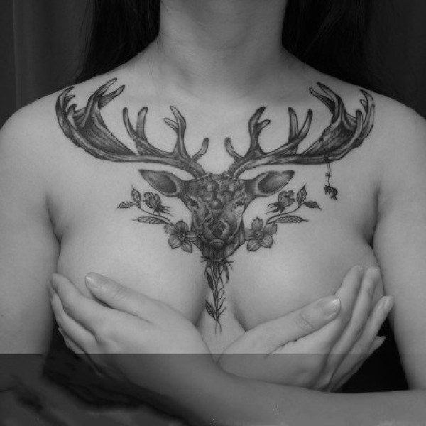 女性大花胸纹身_43张霸气漂亮的女性大花胸纹身图案作品