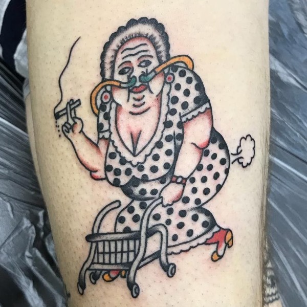 复古卡通红唇美女手臂纹身_卡通纹身图案大全_纹身图吧