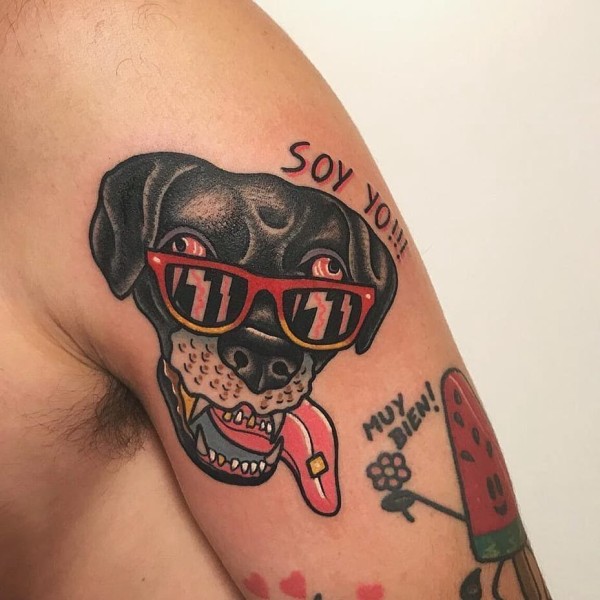 复古卡通红唇美女手臂纹身_卡通纹身图案大全_纹身图吧