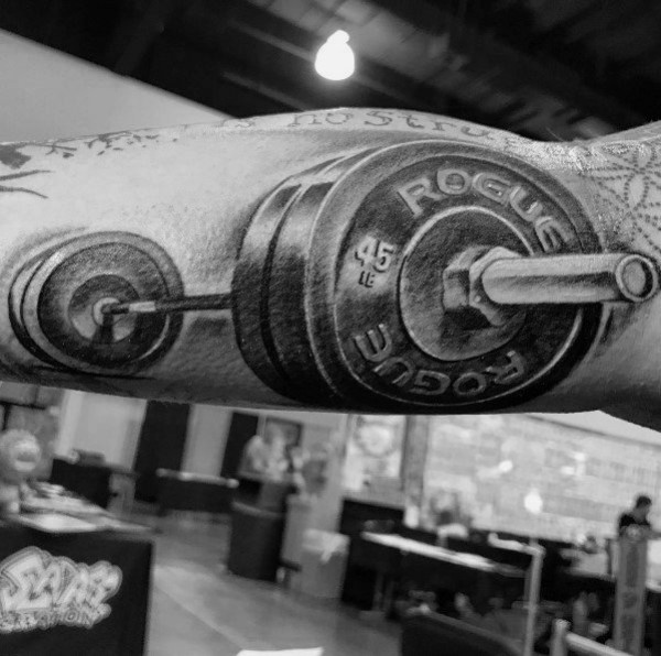 健身相关的黑灰健身器材纹身图案作品图片10张