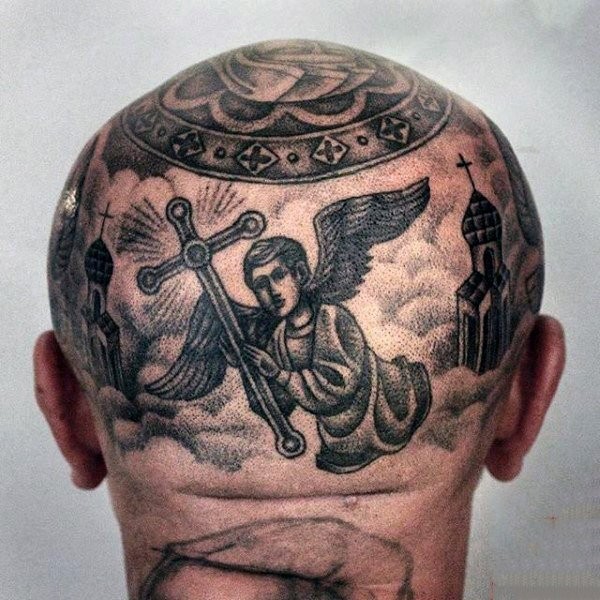 男性头部纹身_11张酷酷的黑灰男性头部纹身图案作品欣赏