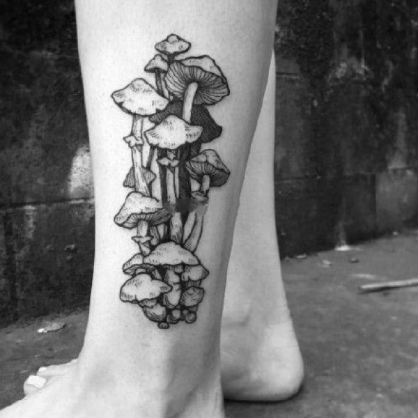 蘑菇纹身图案_9张黑灰蘑菇纹身图案刺青图片作品