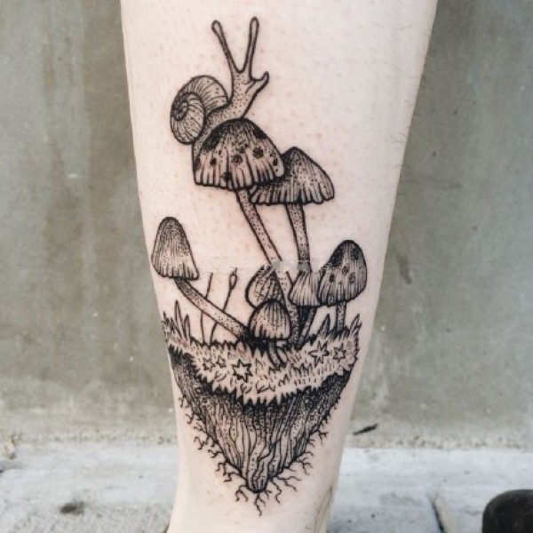 蘑菇纹身图案_9张黑灰蘑菇纹身图案刺青图片作品