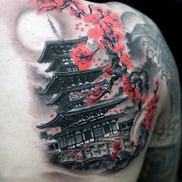 古塔纹身--9张中国风古代塔楼建筑纹身图案作品
