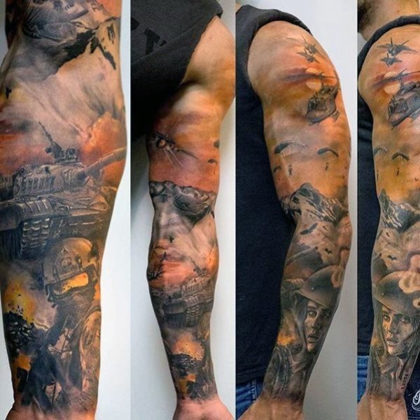 战争主题纹身_10张男性喜欢的坦克等军事战争纹身图案作品