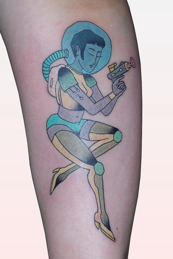 复古卡通红唇美女手臂纹身_卡通纹身图案大全_纹身图吧