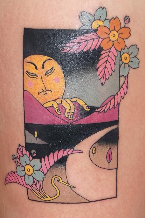 卡通彩色纹身_一组女生可爱的水彩色卡通纹身图案作品图片