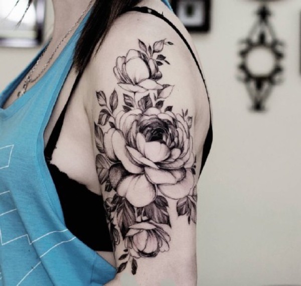 女生肩花纹身_15张女性双肩对称的肩花纹身图案作品图片