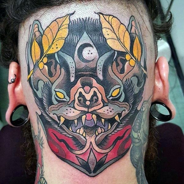 男生头部帅气时尚的狼头纹身图片_头部纹身图案大全_纹身图吧