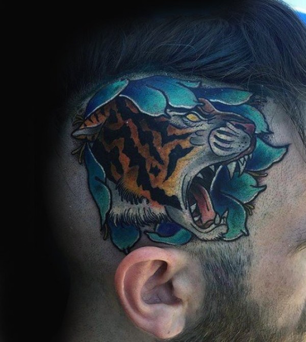 男性头部纹身_10张个性的男士头部纹身图案作品欣赏