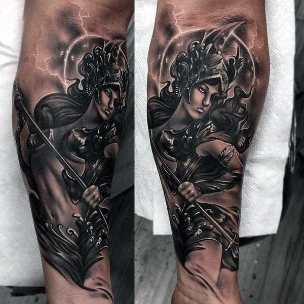 女神雅典娜纹身_11张西方欧美女神雅典娜黑灰纹身图案作品图片