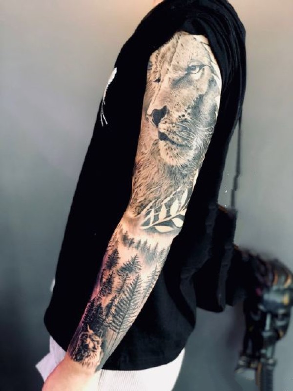 欧美花臂纹身_22张霸气黑灰欧美大黑花臂纹身图案作品图片