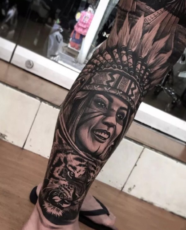 传统风格的一组男性花臂和花腿纹身图案欣赏