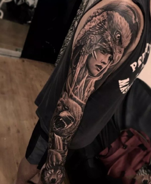 欧美花臂纹身_22张霸气黑灰欧美大黑花臂纹身图案作品图片